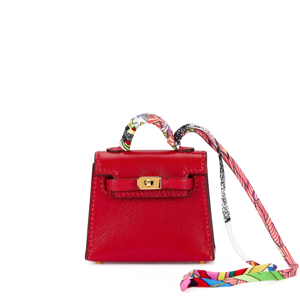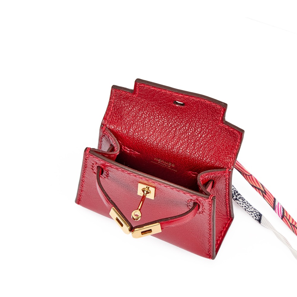Herm?s Rubis Tadelakt Micro Mini Kelly Twilly Bag Charm Gold Hardware, 2022