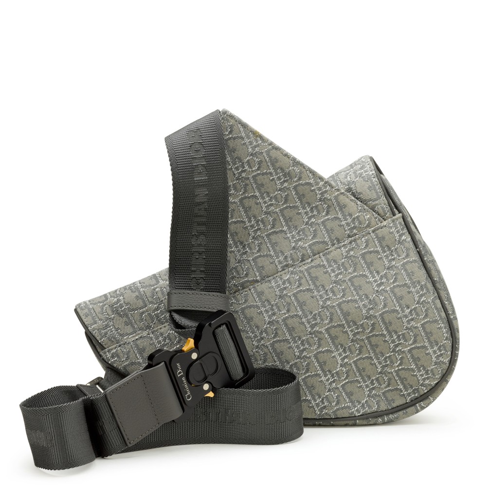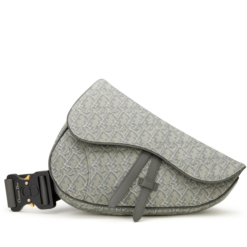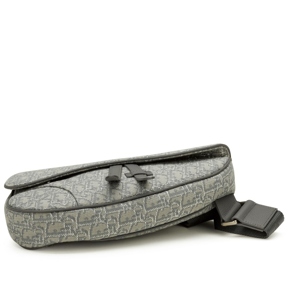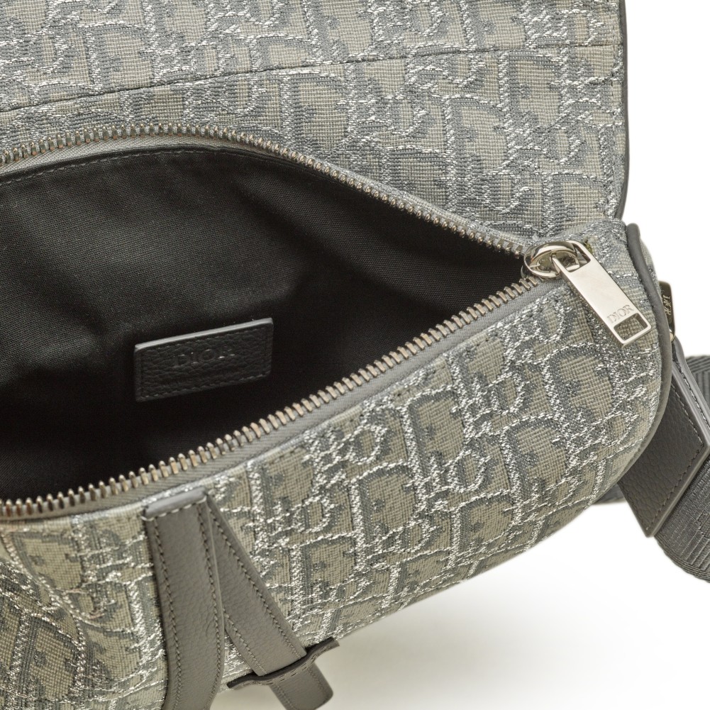Christian Dior Ruthenium Grey Oblique Jacquard Canvas Saddle Bag Silver Hardware, 2022