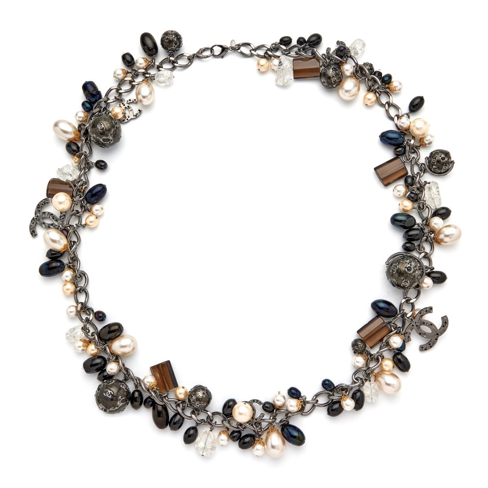 Chanel Ruthenium, Imitation Pearl, Black, Brown and Crystal Beads, and CC Globe Charm Belt, 2004