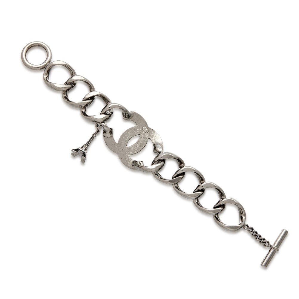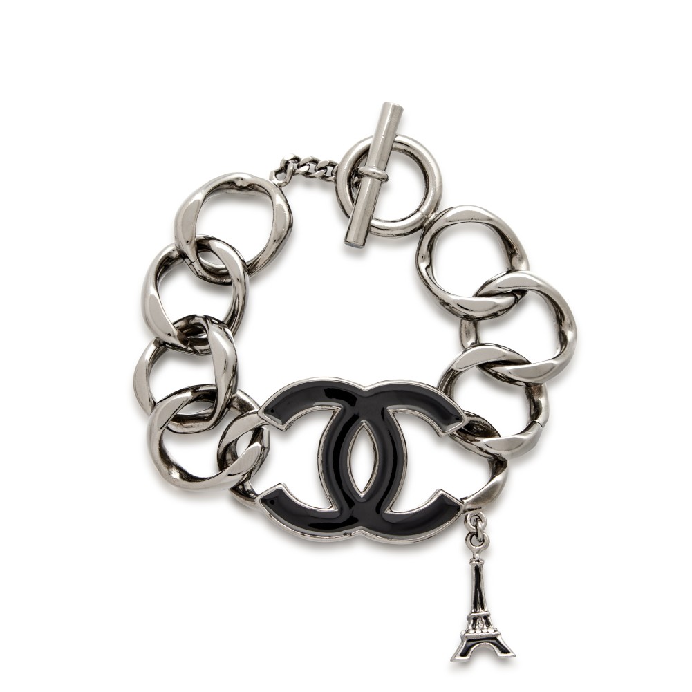 Chanel Ruthenium Metal, Black Enamel CC Eiffel Tower Charm Bracelet, 2006