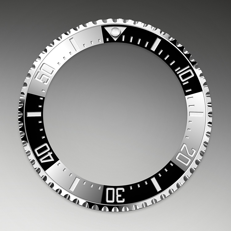The 60-minute graduated, unidirectional rotatable bezel of the Sea-Dweller enables divers to precisely and safely monitor their dive and decompression times. It is equipped with a patented black Cerachrom bezel insert manufactured by Rolex in a virtually scratchproof ceramic whose colour is unaffected by ultraviolet rays. The graduation is coated via PVD (Physical Vapour Deposition) with a thin layer of platinum. The sleek black dial features large Chromalight hour markers and hands, filled with luminescent material that emits a long-lasting blue glow for excellent legibility in dark conditions.