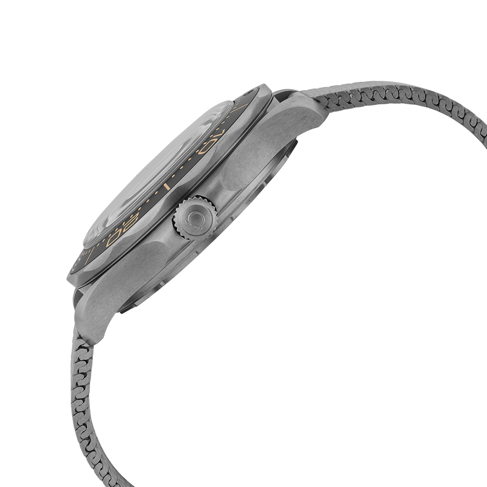 Omega Seamaster with a 42 mm titanium case and a sapphire glass, water resistant; inside is the automatic calibre 8800, a black index face with date indication, the bracelet is a titanium metal bracelet; accessory: sales box (original).