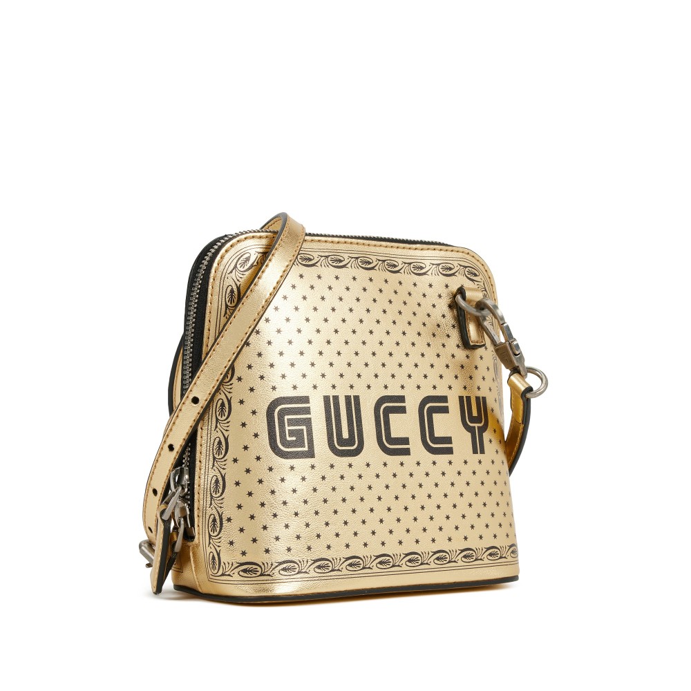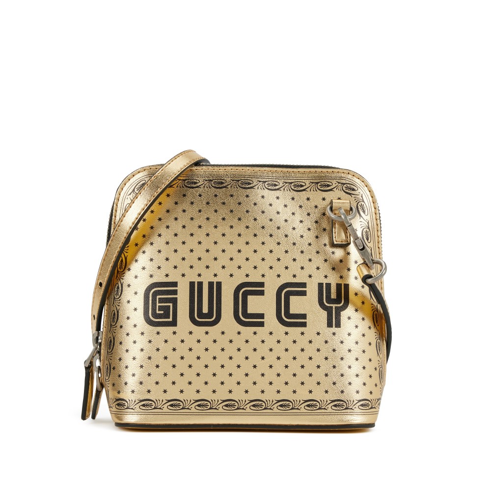 Gucci x SEGA Gold and Black Leather GUCCY Mini Dome Bag Gold Hardware
