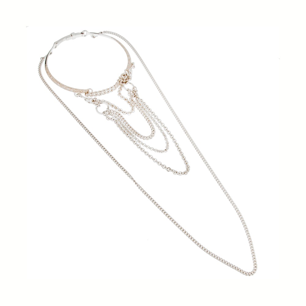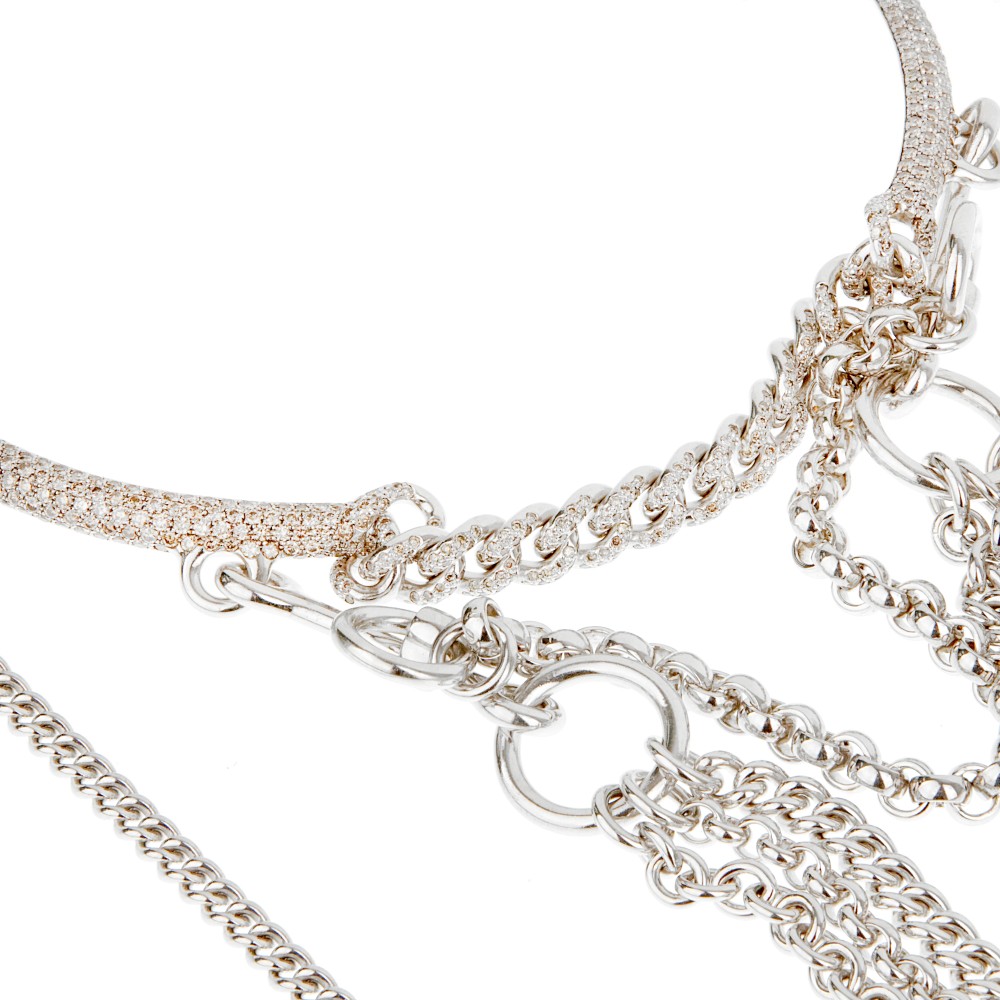 The necklace of long chain and choker design, the choker pav? set with brown diamonds, featuring a detachable 4 chain choker of mixed curb links and rolo links.