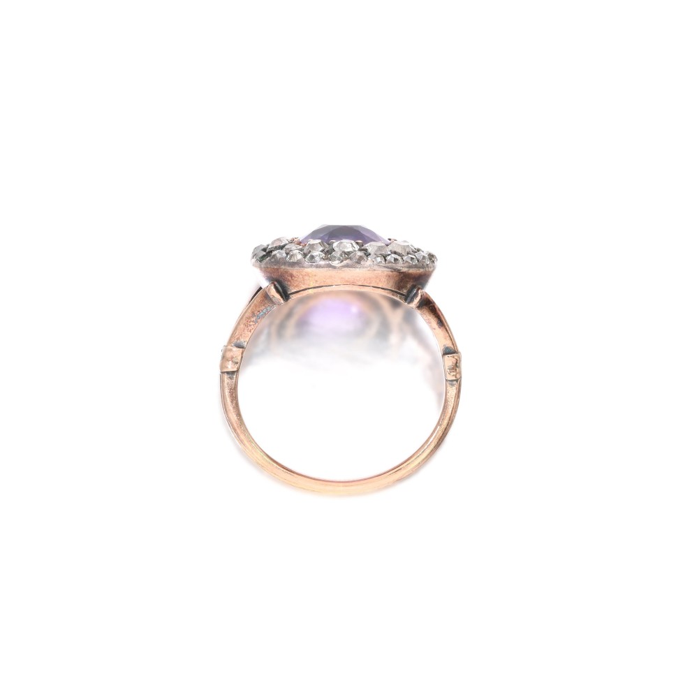 Composed of a cushion-shaped amethyst and accented by European-cut diamonds.