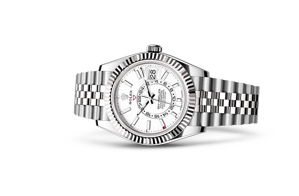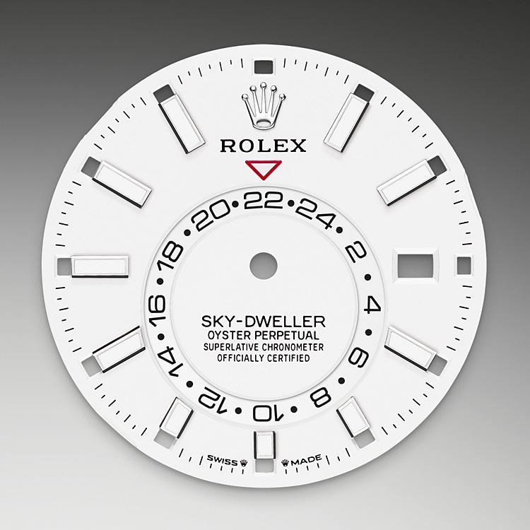 The Rolex fluted bezel is a mark of distinction. Originally, the fluting of the Oyster bezel had a functional purpose: it served to screw the bezel onto the case, helping to ensure the waterproofness of the watch. It was therefore identical to the fluting on the case back, which was also screwed onto the case for waterproofness, using specific Rolex tools. Over time, the fluting became an aesthetic element, a genuine Rolex signature feature. Today the fluted bezel is a mark of distinction, always in gold. The Sky-Dweller is equipped with a mechanism of interaction between the rotatable bezel, the winding crown and the movement: the Ring Command system, which allows the user to select the watch’s functions one-by-one and to set them easily, quickly and securely.