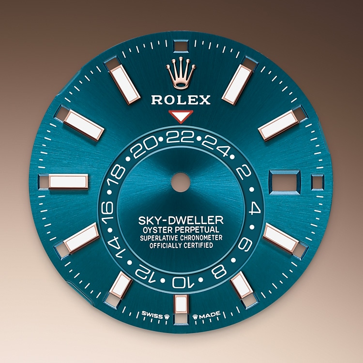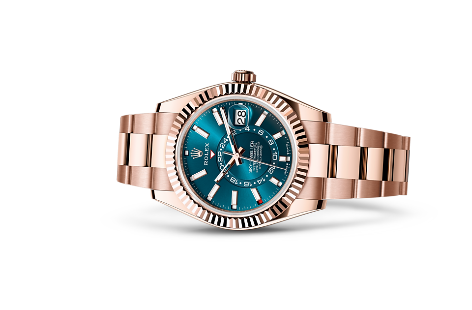 The Rolex fluted bezel is a mark of distinction. Originally, the fluting of the Oyster bezel had a functional purpose: it served to screw the bezel onto the case, helping to ensure the waterproofness of the watch. It was therefore identical to the fluting on the case back, which was also screwed onto the case for waterproofness, using specific Rolex tools. Over time, the fluting became an aesthetic element, a genuine Rolex signature feature. Today the fluted bezel is a mark of distinction, always in gold. The Sky-Dweller is equipped with a mechanism of interaction between the rotatable bezel, the winding crown and the movement: the Ring Command system, which allows the user to select the watch’s functions one-by-one and to set them easily, quickly and securely.