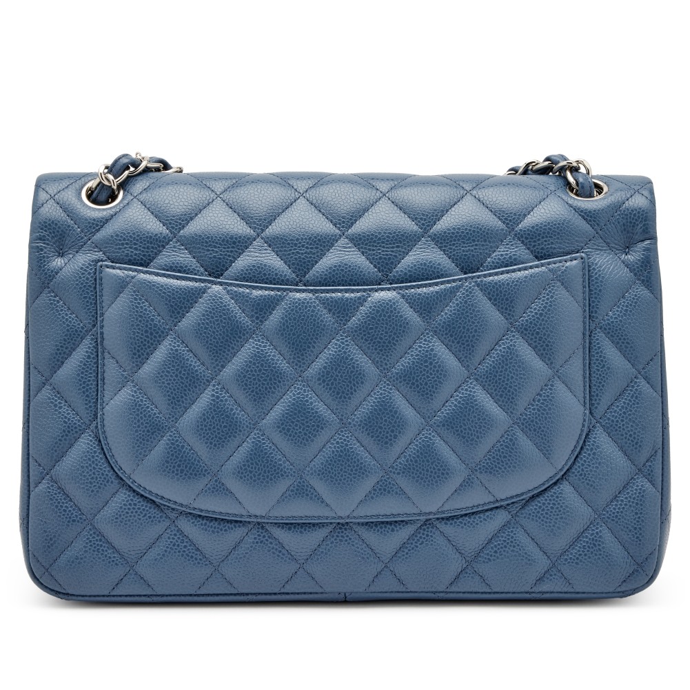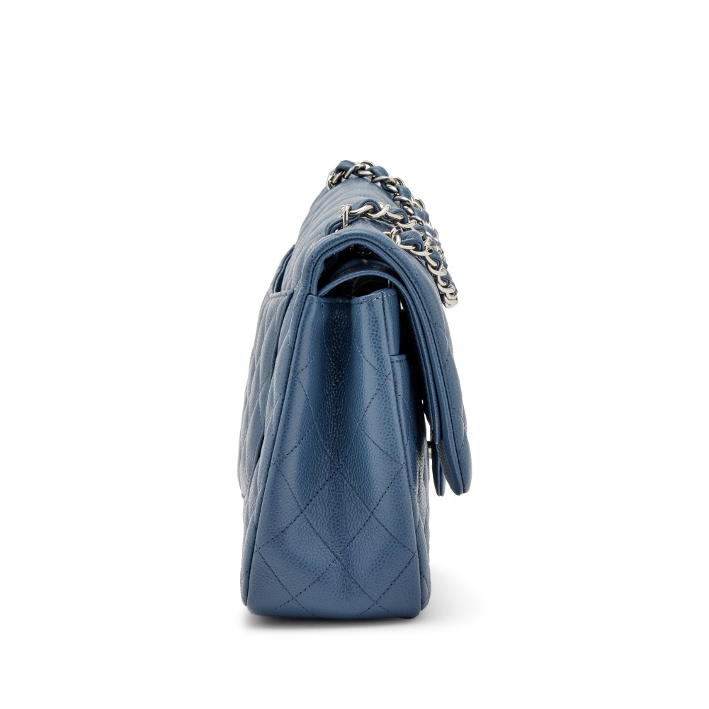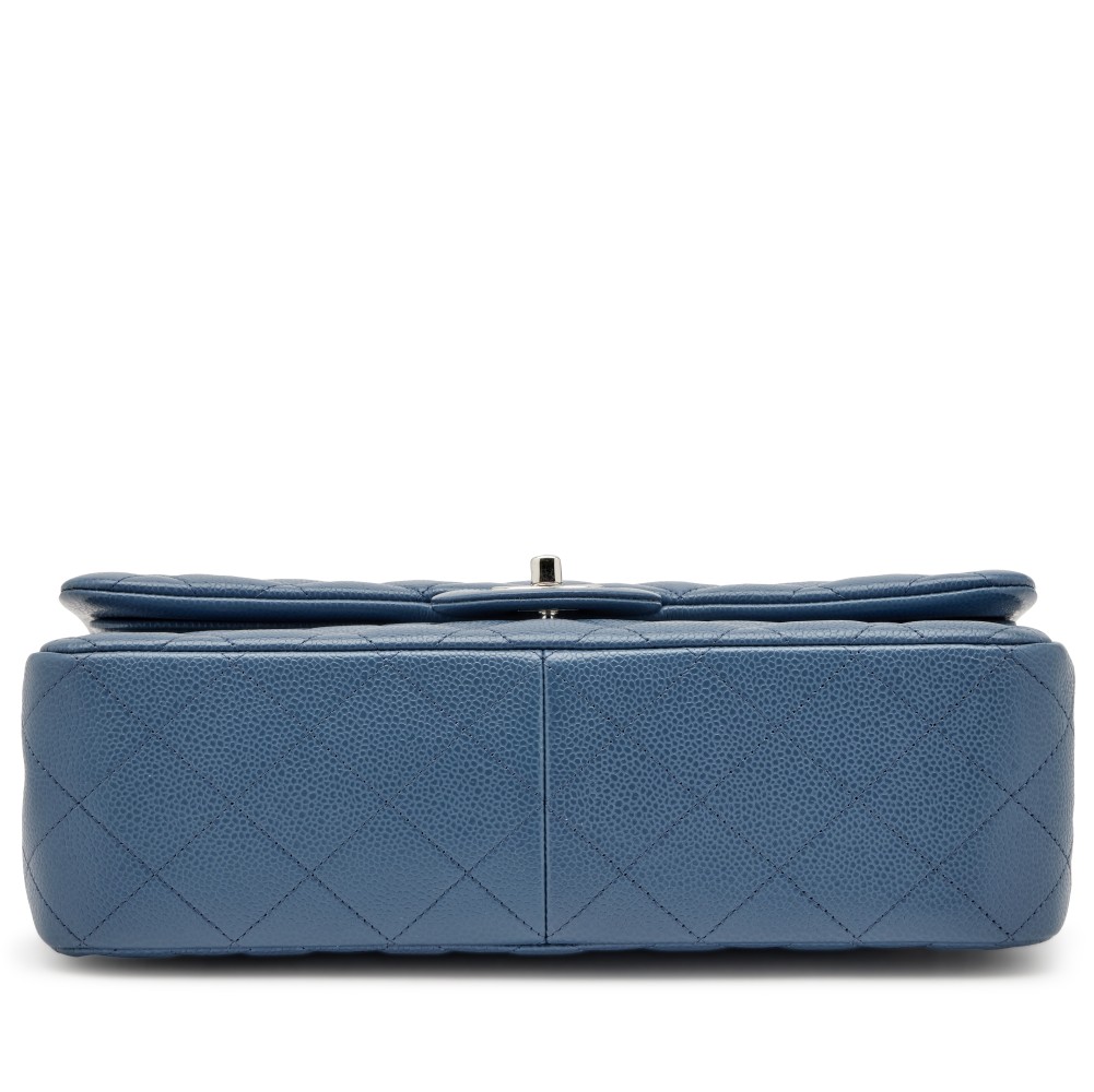 Chanel Slate Blue Quilted Caviar Jumbo Classic Double Flap Bag Silver Hardware, 2014