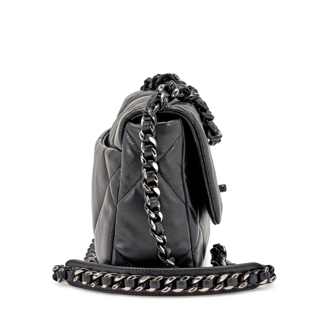 Chanel So Black Quilted Goatskin Medium 19 Flap Black Hardware, 2022