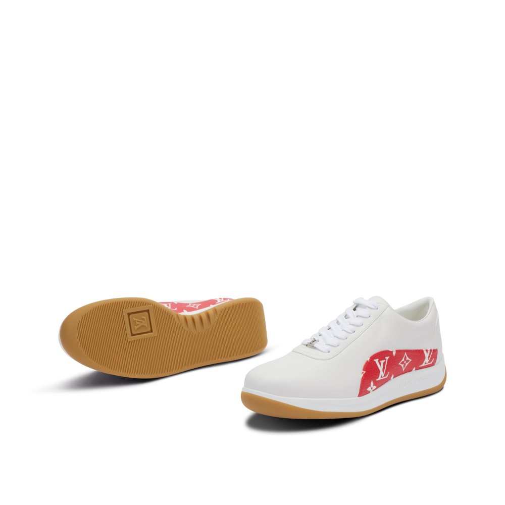 Hats, t-shirts and skate decks, the same items that in 2000 prompted the cease and desist, now featured the Louis Vuitton monogram pattern in the iconic Supreme Red and LV?s classic black and brown.