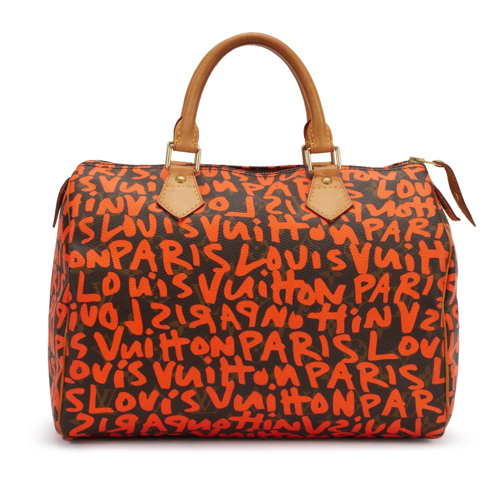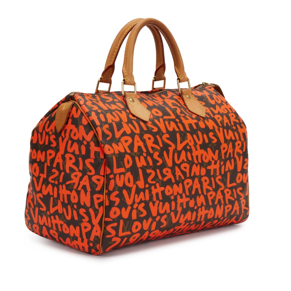 - This print was designed by artist Stephen Sprouse in collaboration with Vuitton’s then Creative Director Marc Jacobs