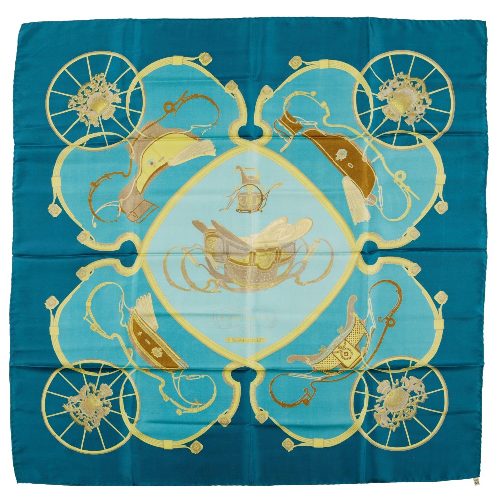 Herm?s Teal, Blue and Gold Springs Silk Scarf