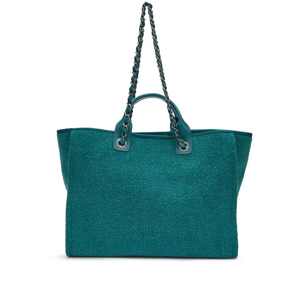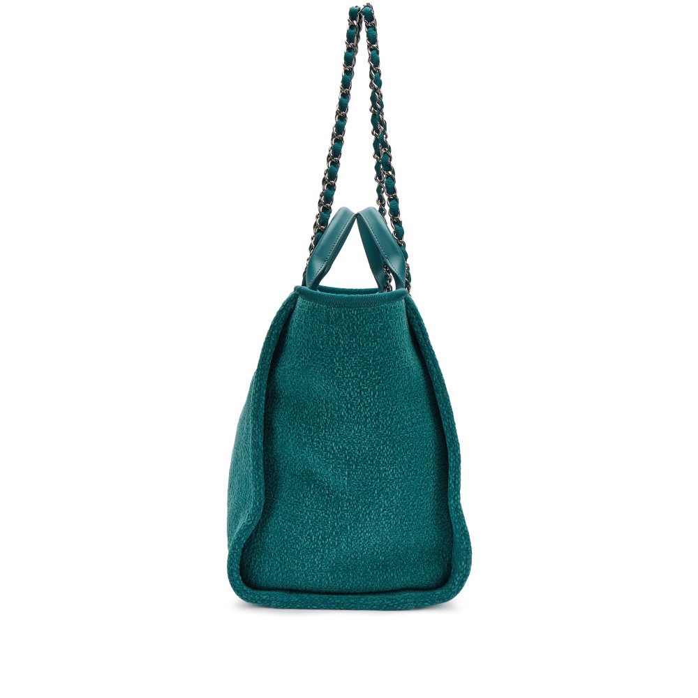 Chanel Turquoise Woven Canvas Medium Deauville Tote Silver Hardware, 2019
