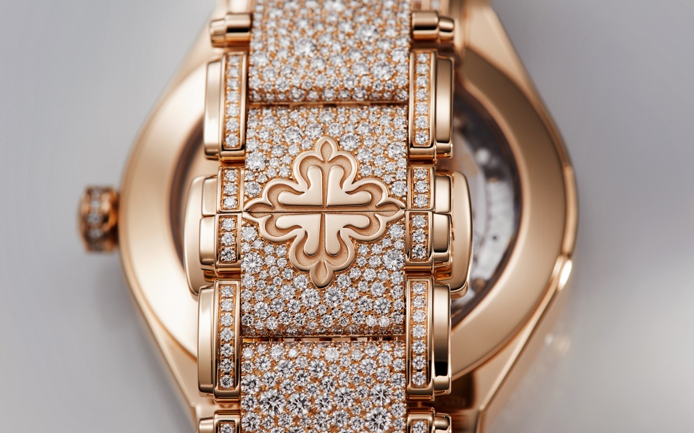 Patek Philippe?s latest ladies? watch, the Twenty~4 Automatic, now presents its timeless elegance in a rose gold Haute Joaillerie model that celebrates the beauty of the iconic design. The dial, bezel, crown and bracelet are paved with diamonds presented in a ?random? or ?snow? setting.
