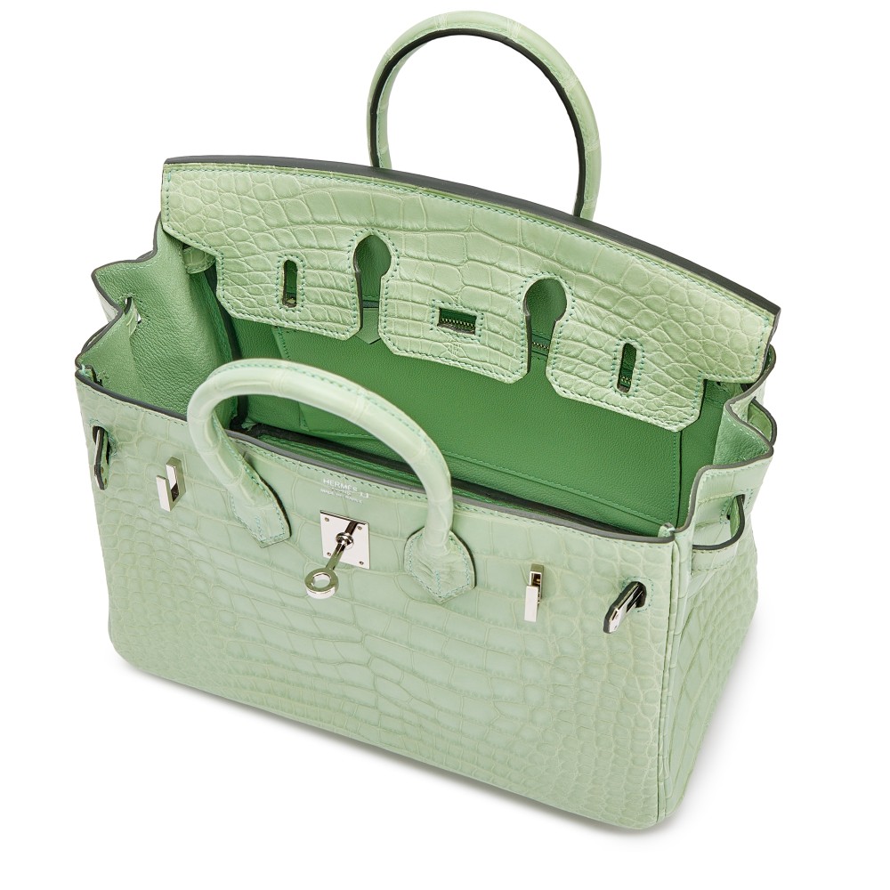 Herm?s Vert D?Eau Matte Alligator Birkin 25 Palladium Hardware, 2017