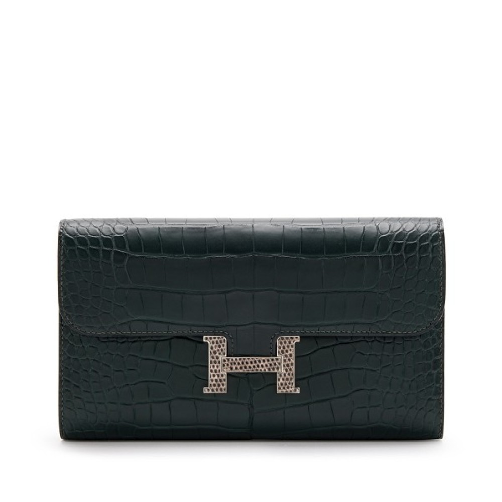 Herm?s Vert Fonc? Matte Alligator Marquette Constance Long Wallet Ombr? Lizard Hardware, 2018