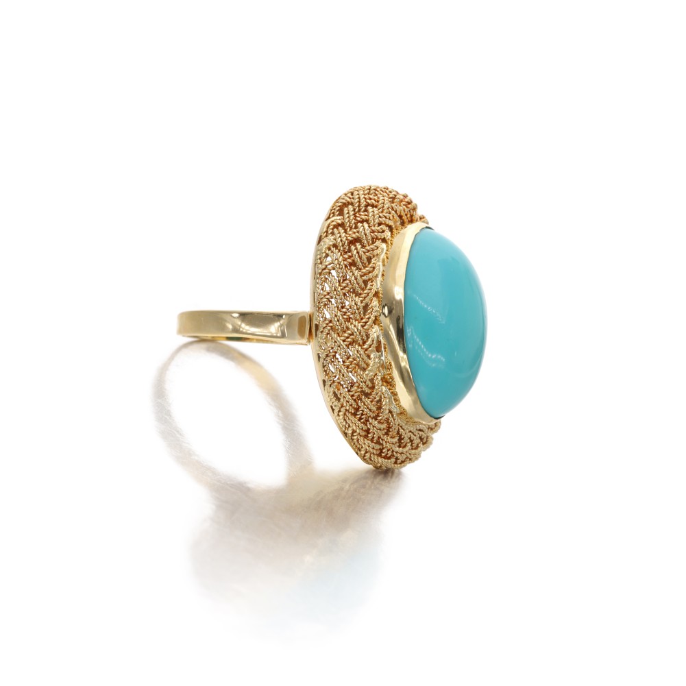Centering an oval cabochon turquoise.