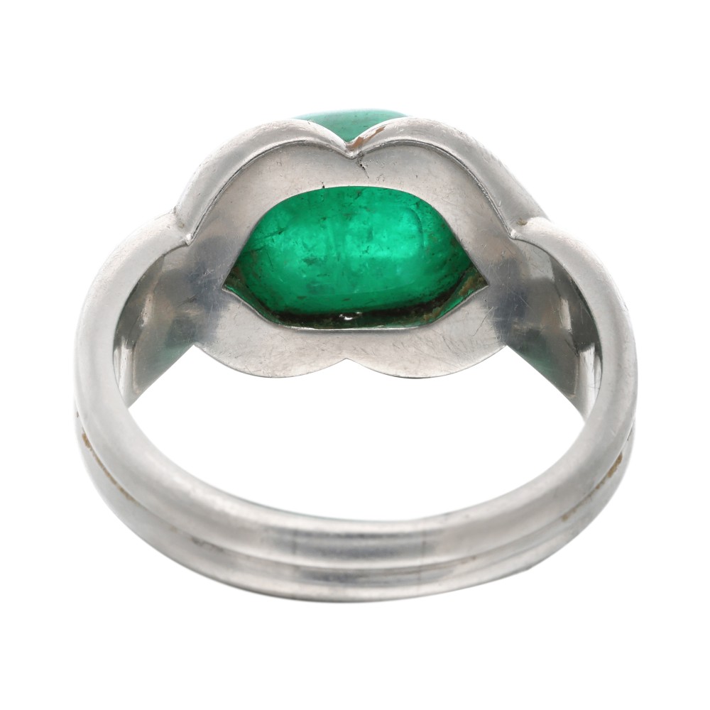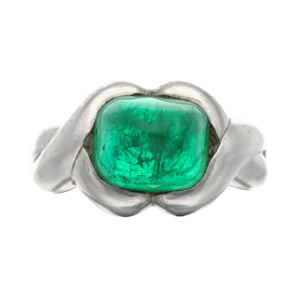 Set with a sugarloaf cut emerald.