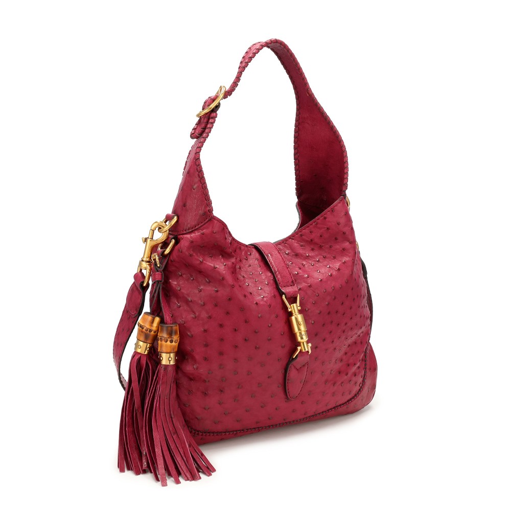 Gucci Violet Ostrich Medium New Jackie Bag Gold Hardware