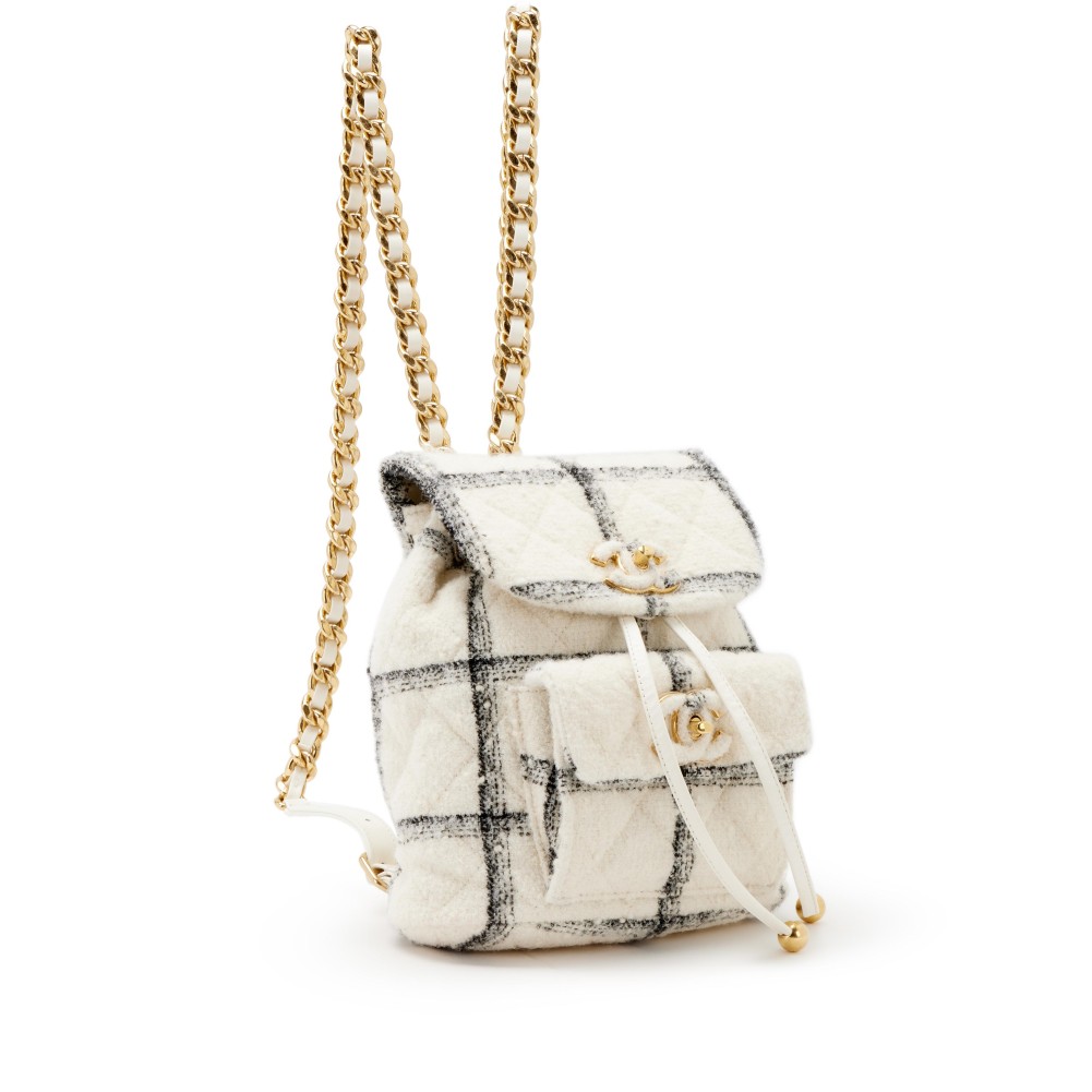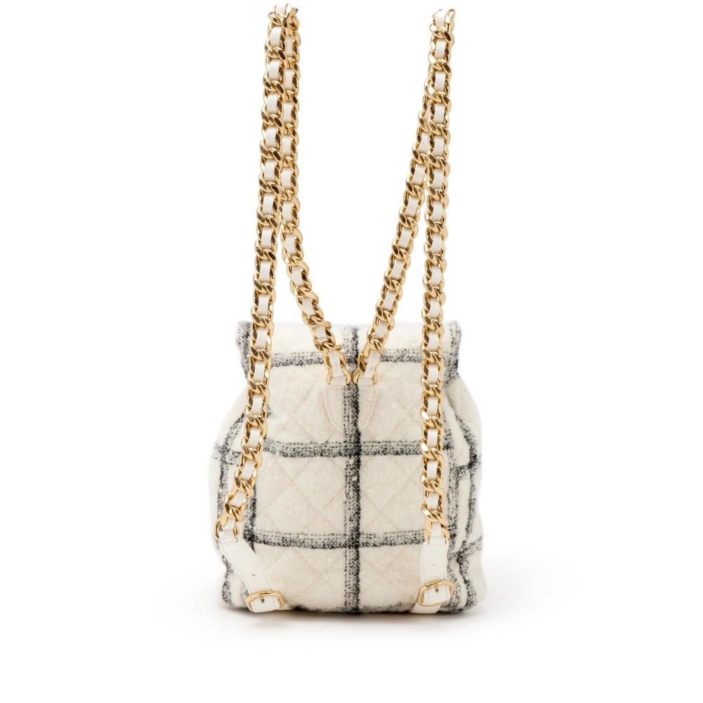 Chanel White and Black Wool Tweed Backpack Gold Hardware, 2022