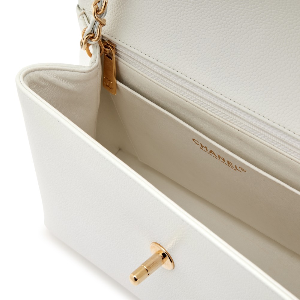Chanel White Caviar CC Trapezoid Flap Bag Gold Hardware, 1999
