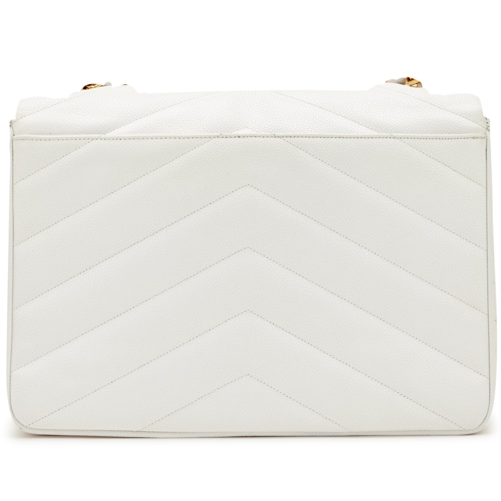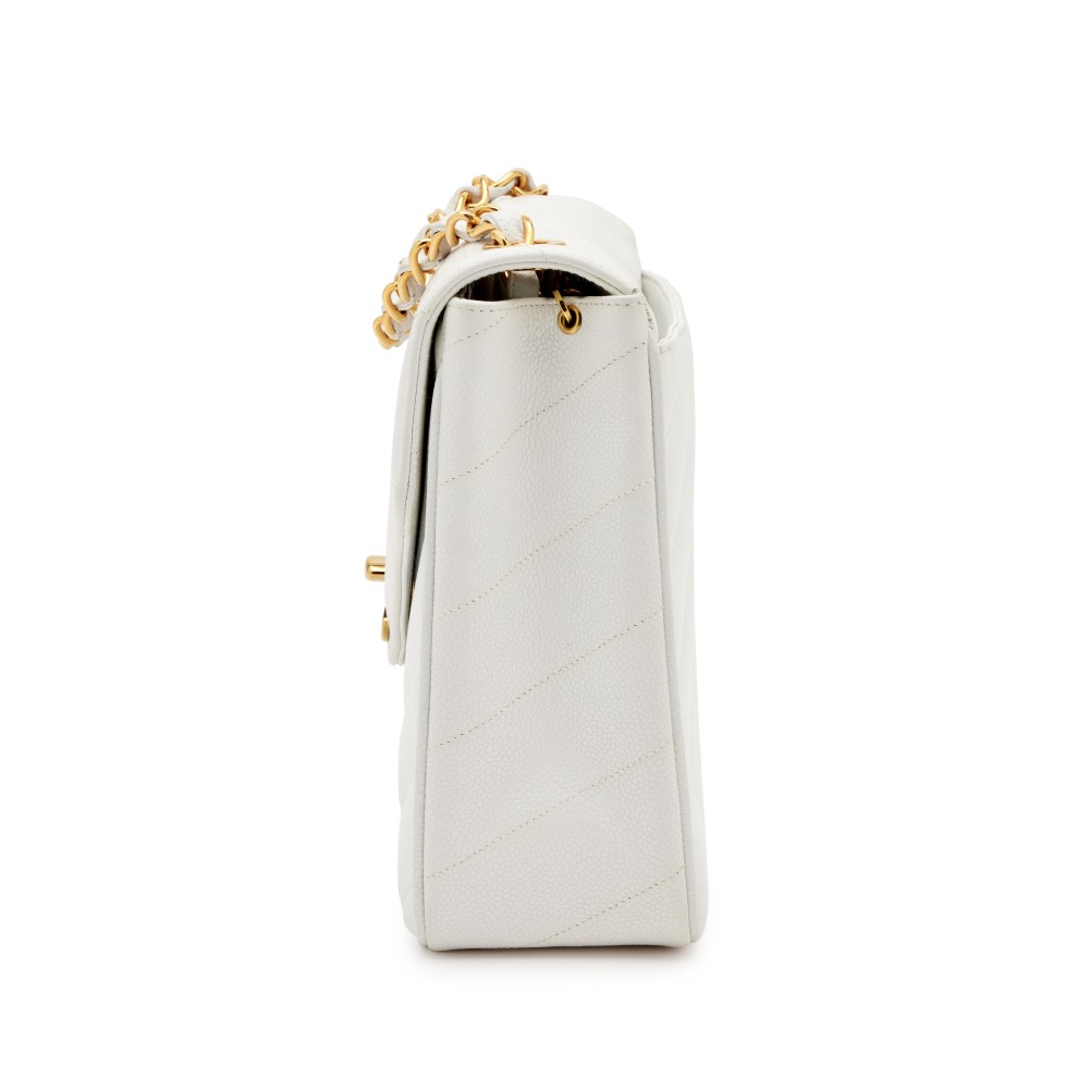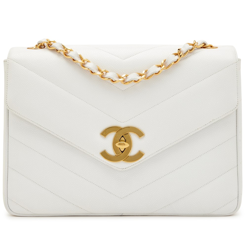 Chanel White Chevron Quilted Caviar Jumbo Envelope Flap Bag Gold Hardware, 1994-1996
