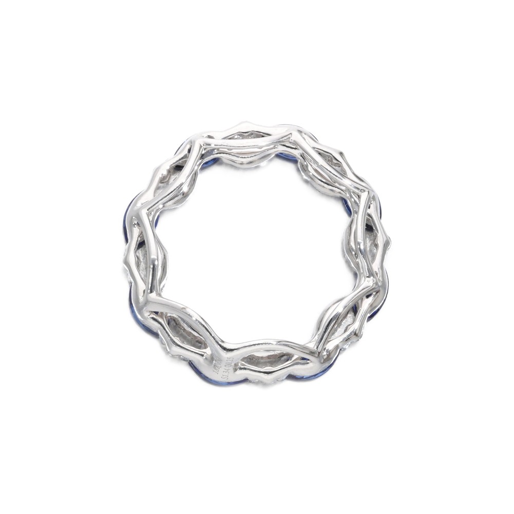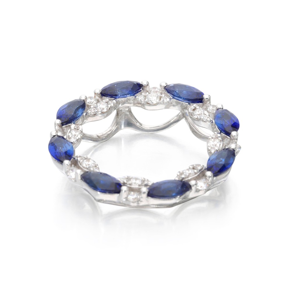 Composed of marquise-shaped sapphires and accented by round brilliant-cut diamonds.