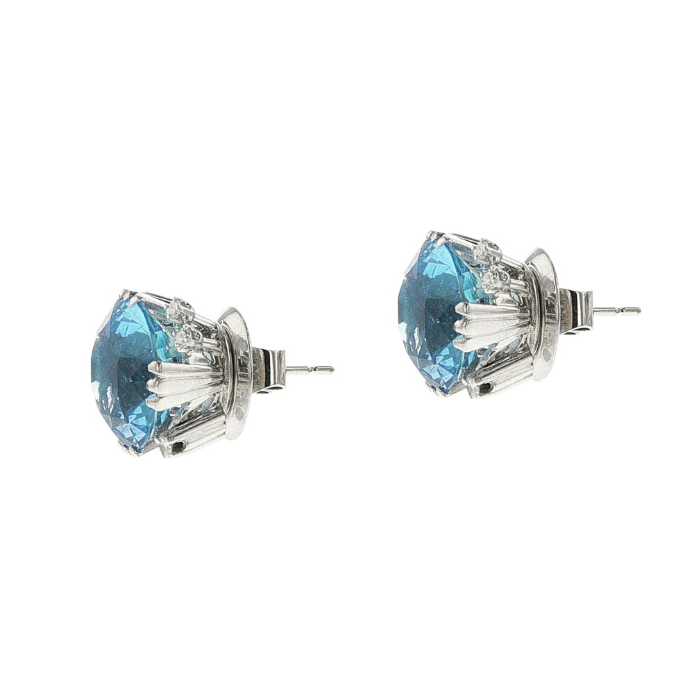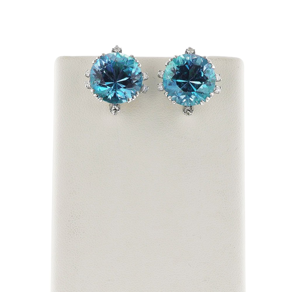 Each set with 1 round aquamarine, accented by round brilliant-cut diamonds.
