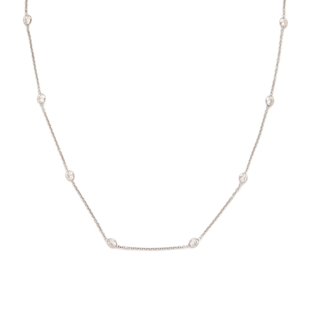 Set with 8 round brilliant-cut diamonds in diamond-by-the-yard design.