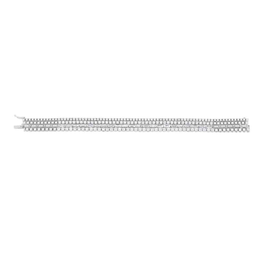 Composed of 4 rows of diamonds, 3 rows set with round brilliant-cut diamonds and 1 row set with baguette-cut diamonds.