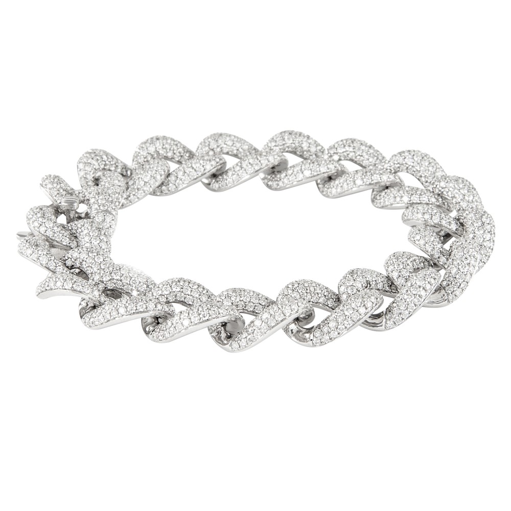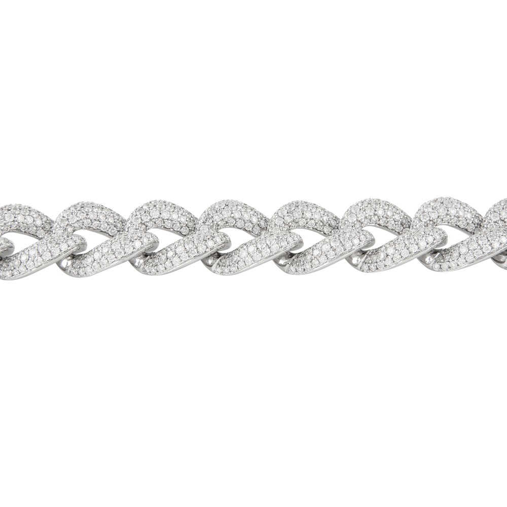 Set with 1,648 round brilliant-cut diamonds in a Cuban chain design.