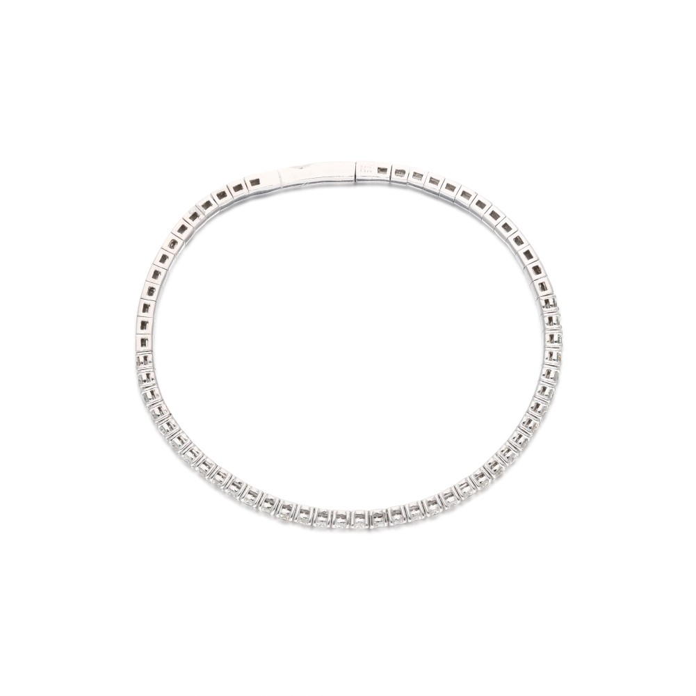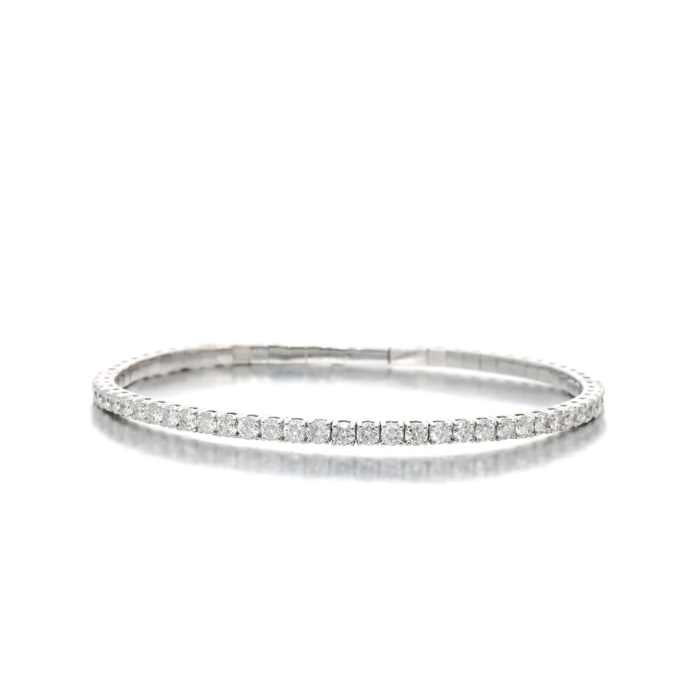 Set with 35 round diamonds in a tension design.