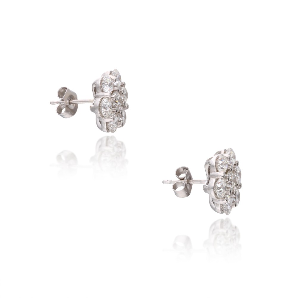 Set with 14 round brilliant-cut diamonds in a flower design.