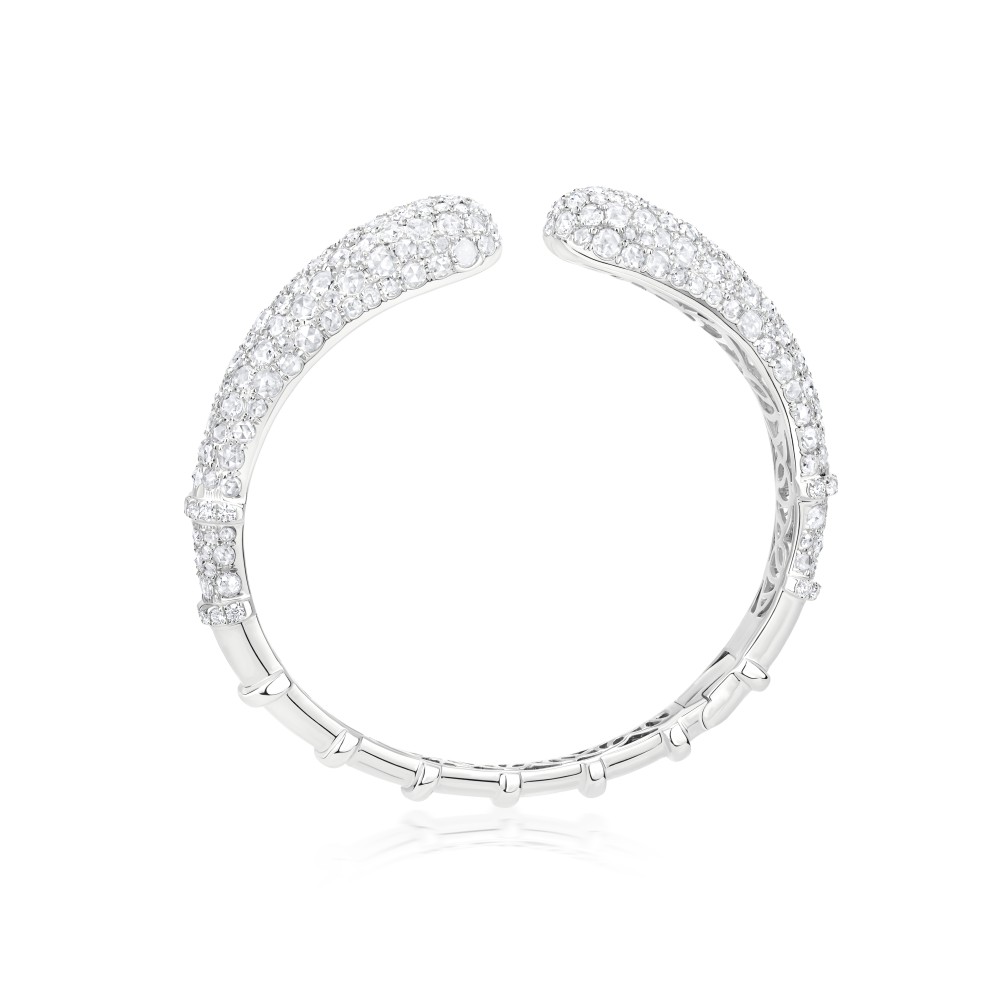 Designed as a hinged cuff bracelet, set with rose-cut diamonds and brilliant-cut diamonds.