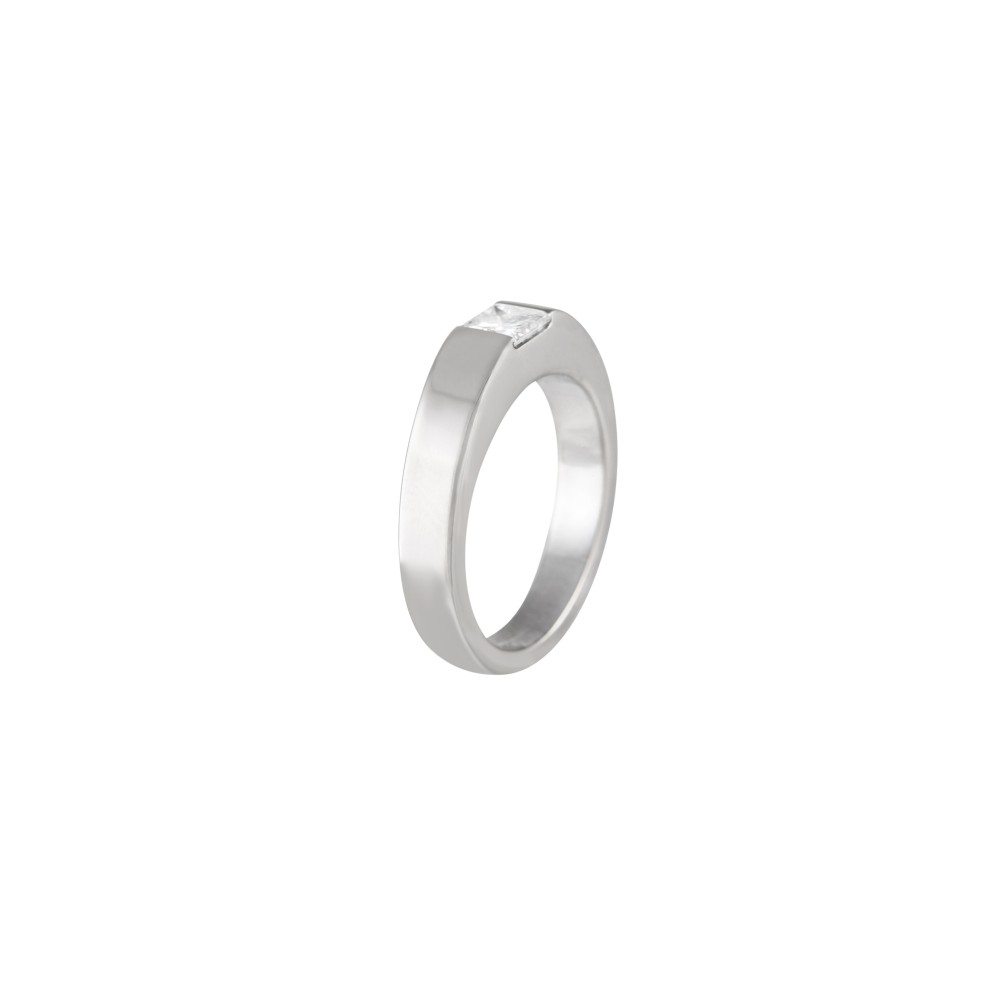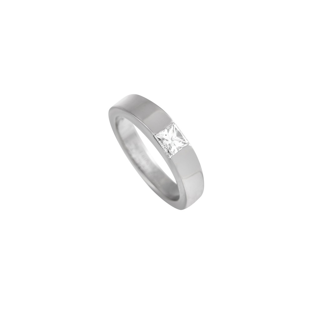 Set with a princess-cut diamond.