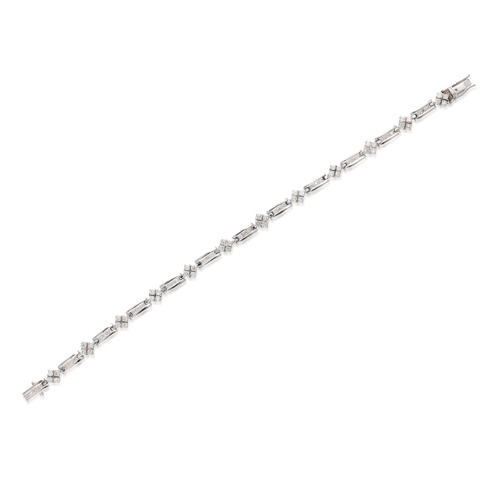A link bracelet composed of round brilliant cut diamonds.