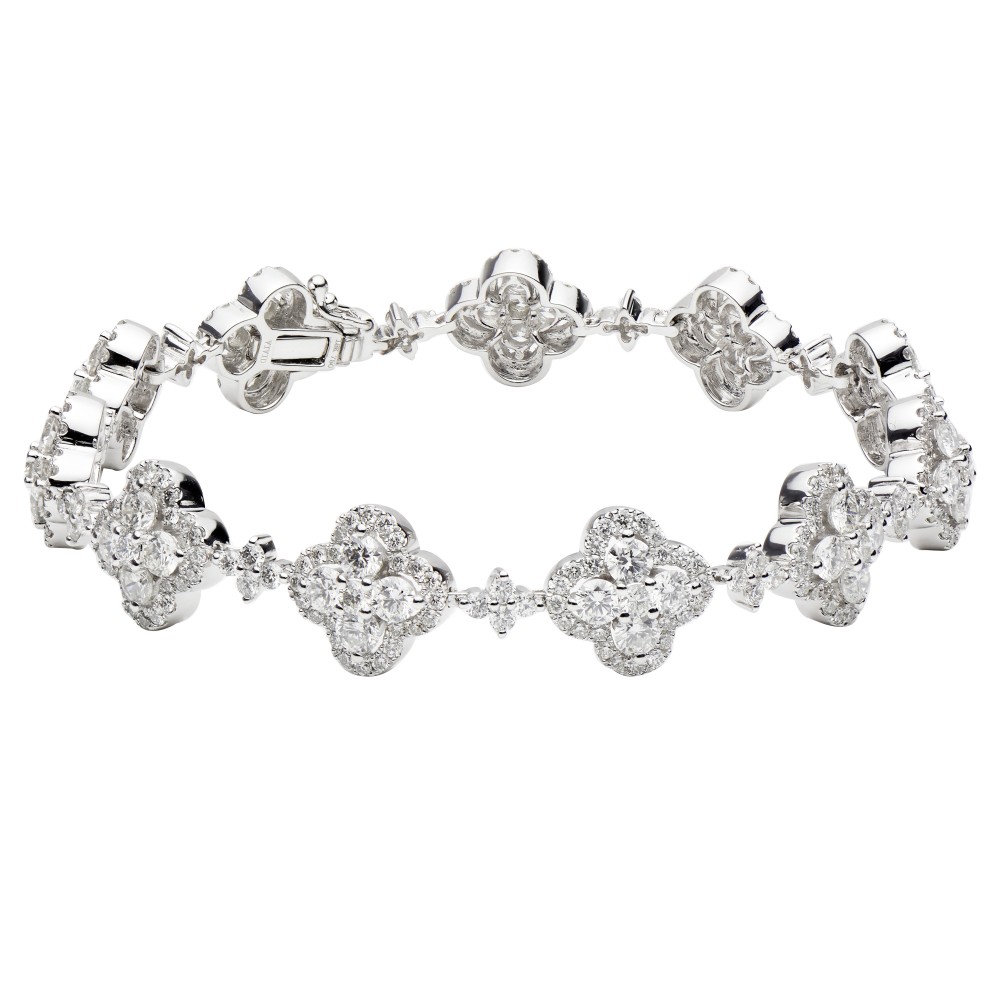 Featuring quatrefoil shape stations set with round brilliant cut diamonds.