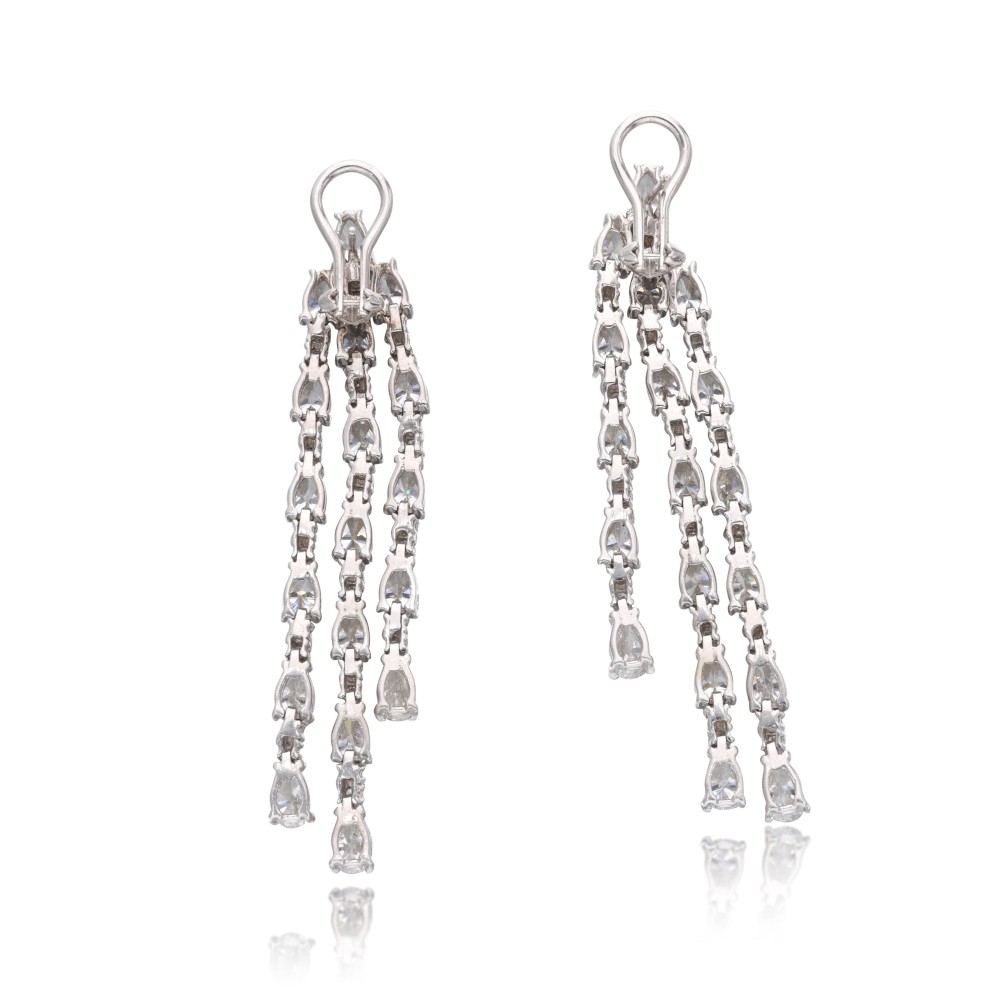 Composed of round brilliant-cut and pear-shaped diamonds.