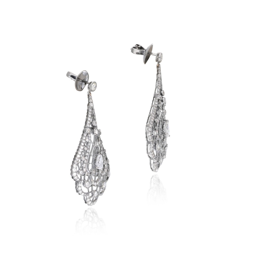 Composed of pear-, old European-cut and round brilliant-cut diamonds.