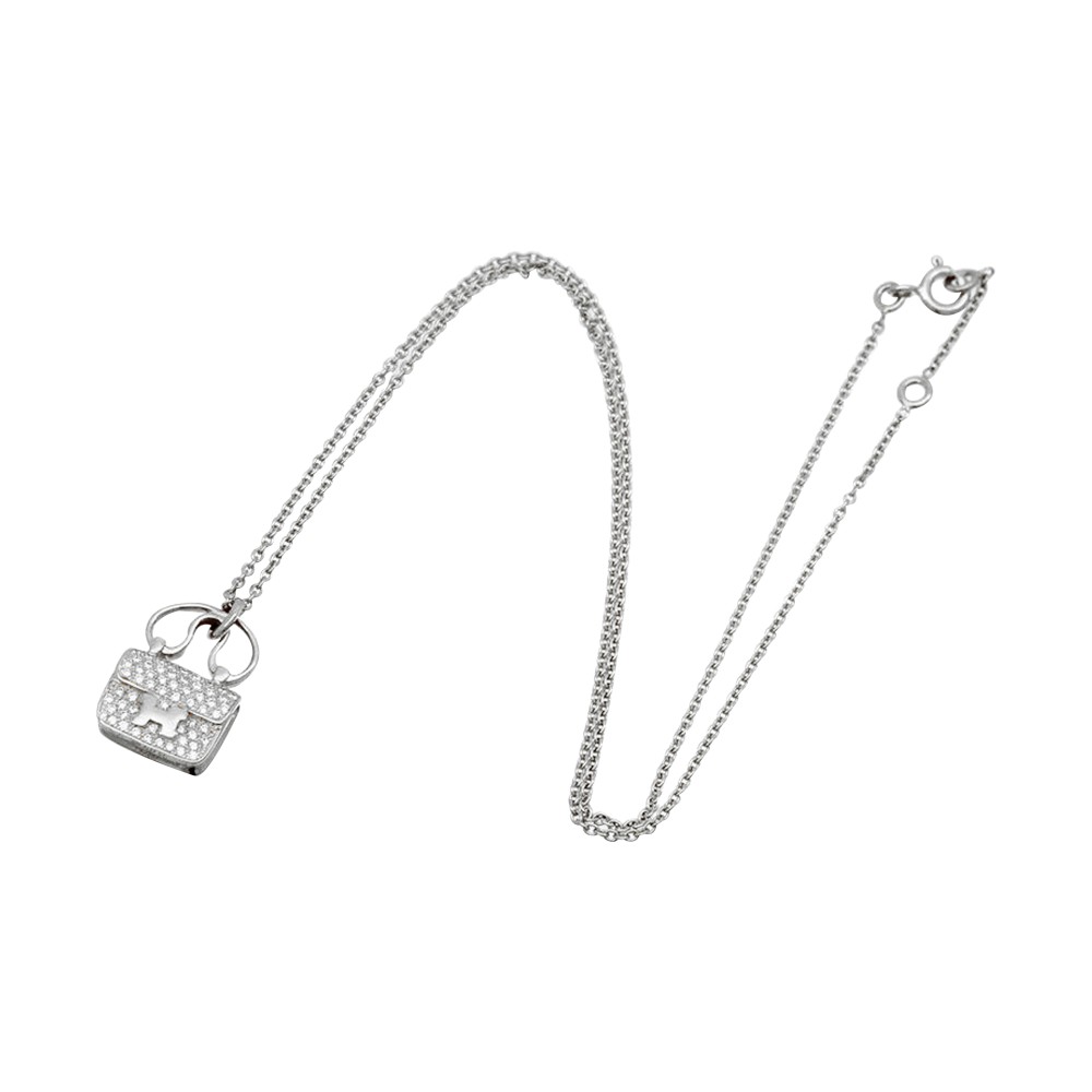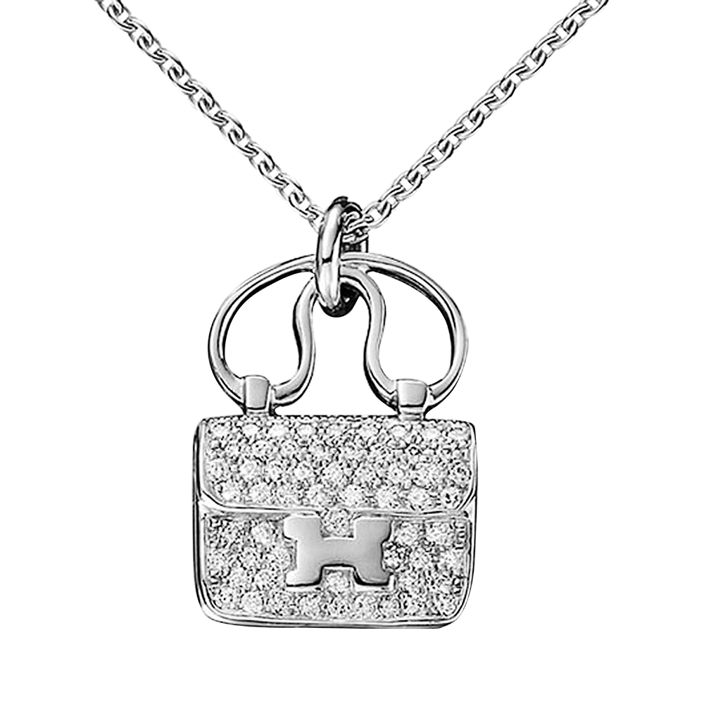 The pendant designed as a pav? diamond set Herm?s Constance bag, the pendant attached to a white gold chain.