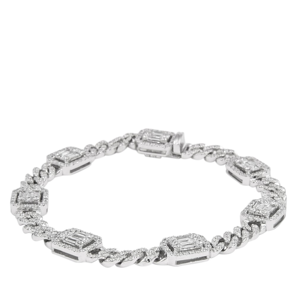 Featuring 5 rectangular stations with illusion-set diamonds, connected by curb links with pav?-set diamonds.
