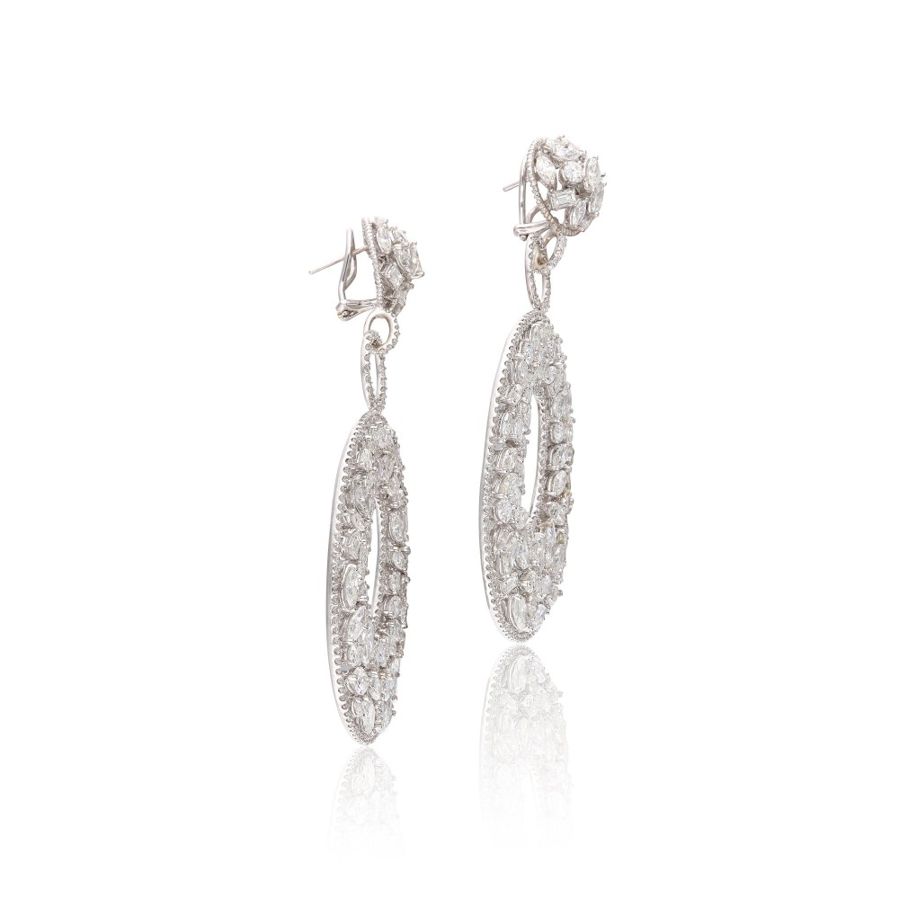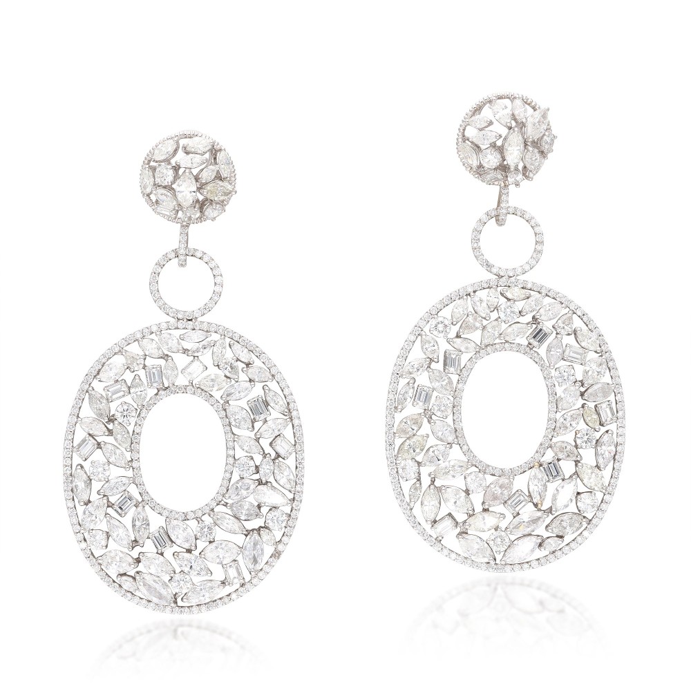 Composed of round brilliant, emerald, pear and marquise-cut diamonds.
