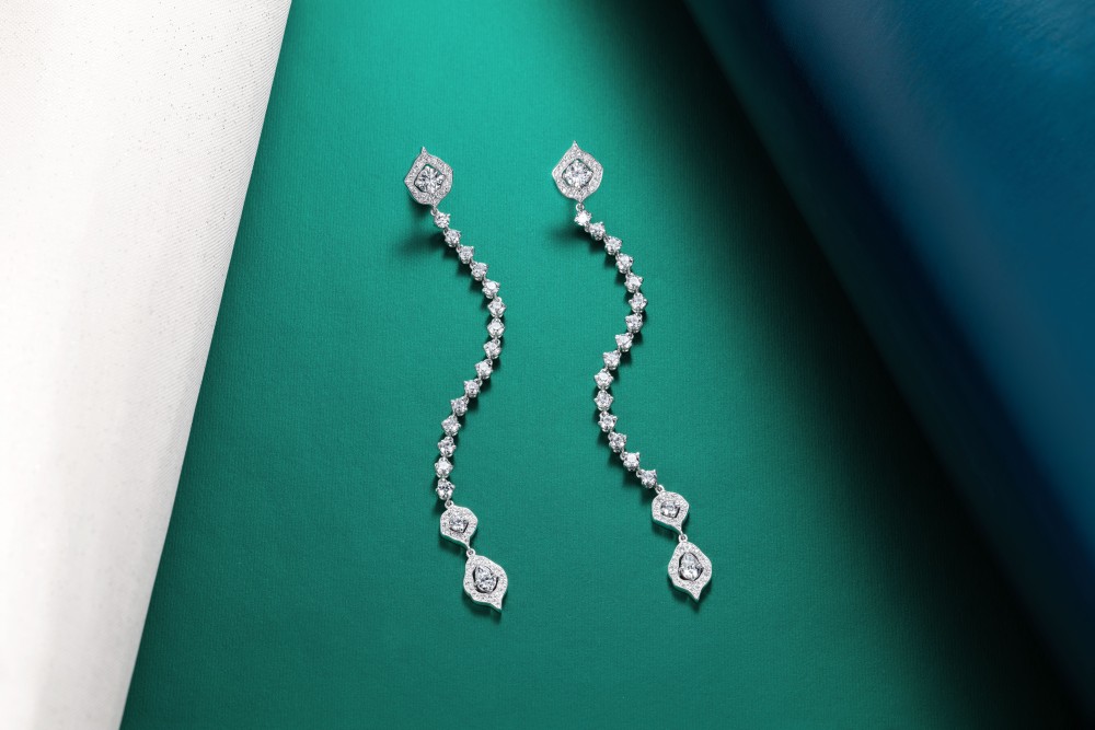 Stiletto earrings in white gold with round brilliant diamonds.