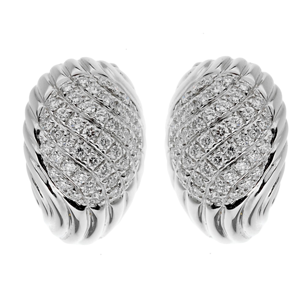 The earclips designed as domes featuring a swirl motif, a portion of each dome set with numerous round diamonds.