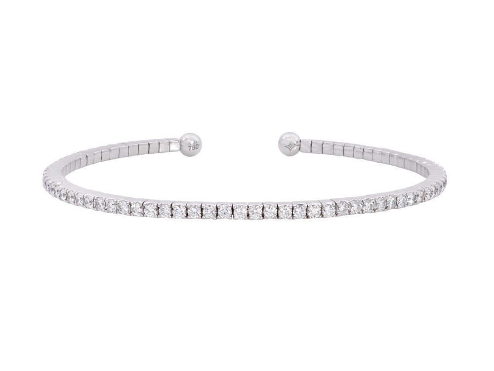 Set with 75 round brilliant diamonds, 2 larger bezel set diamonds at both ends.
