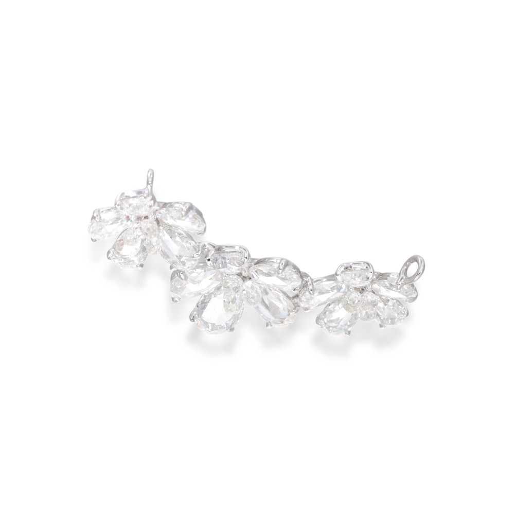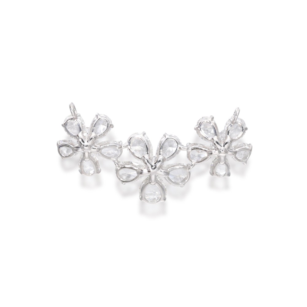 Three stylized flowers composed of pear-shaped rose-cut diamonds.