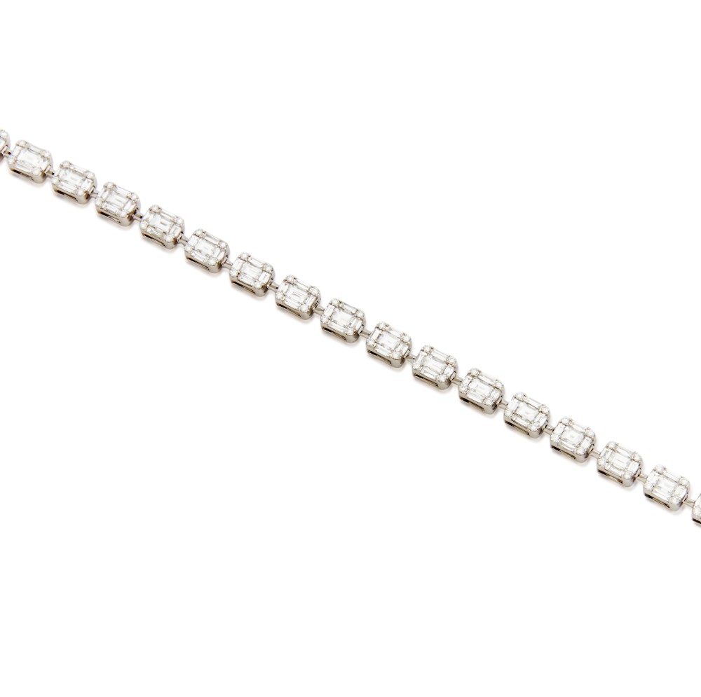Designed as a flexible line set with baguette diamond and round brilliant-cut diamond composites.