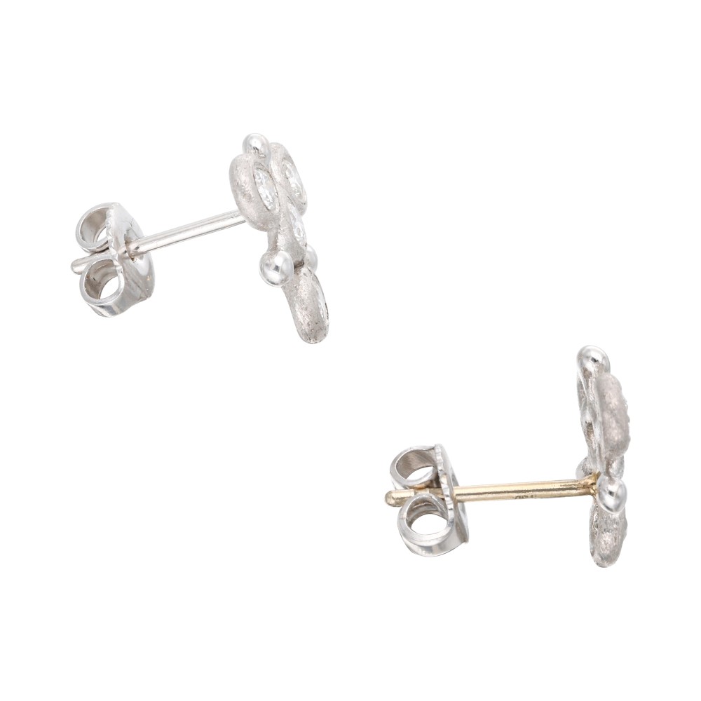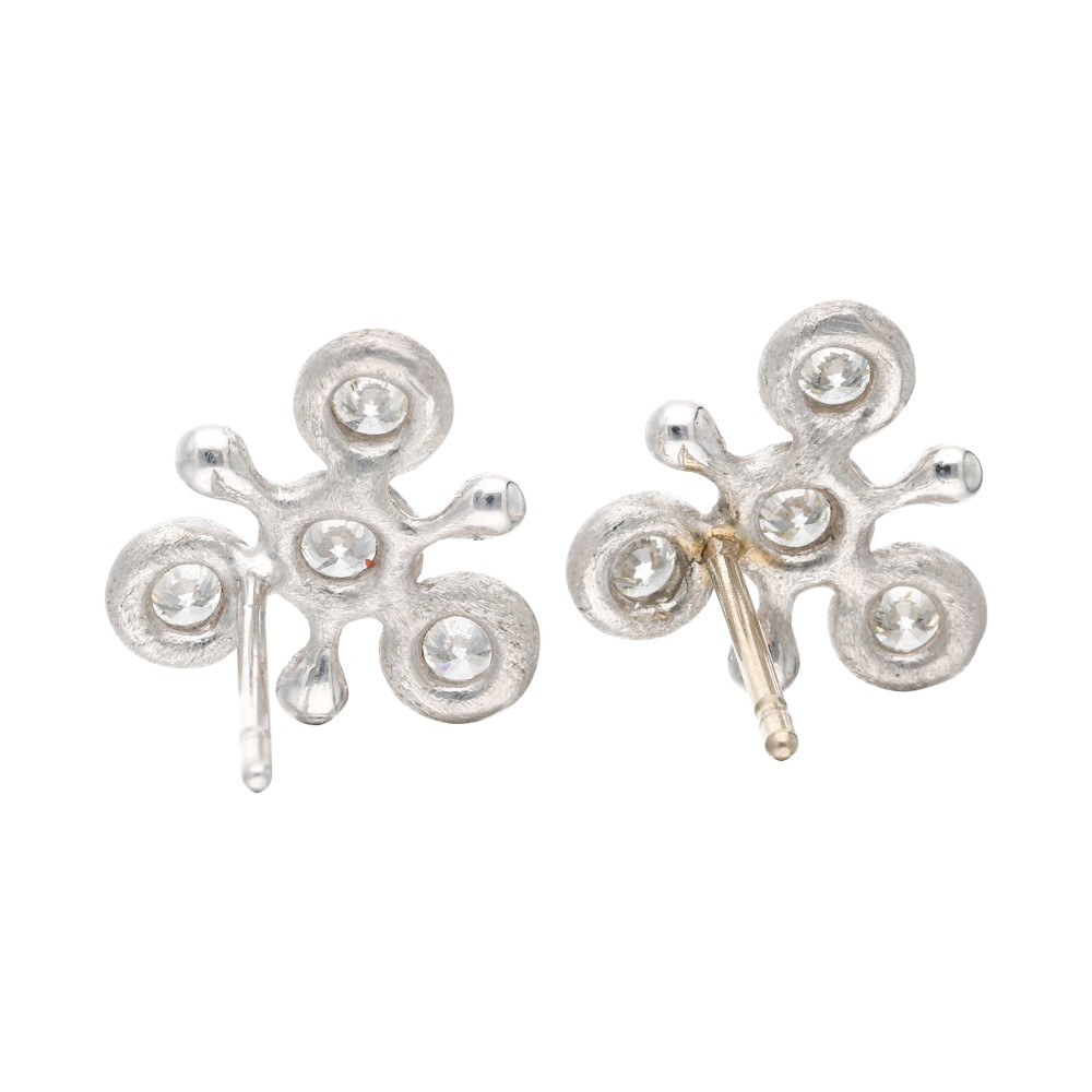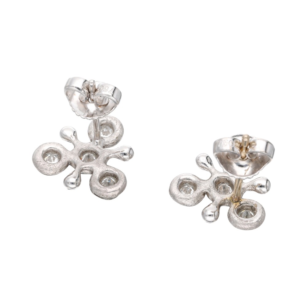 Designed as a sea star, set with 4 round brilliant cut diamonds on each.