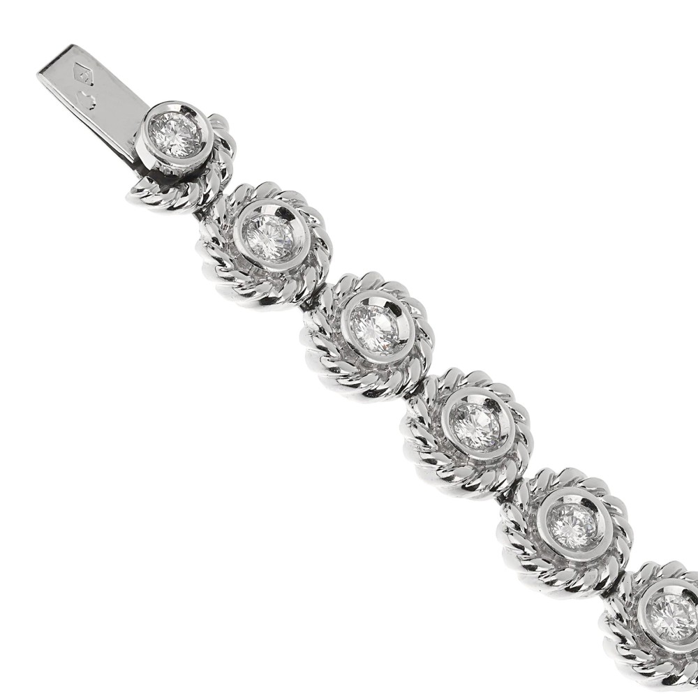With twisted rope design, set with round diamonds.