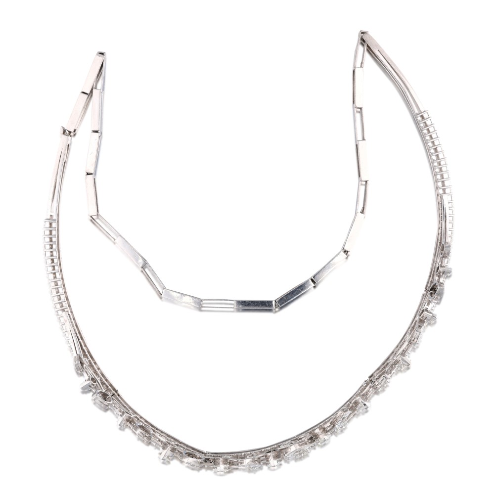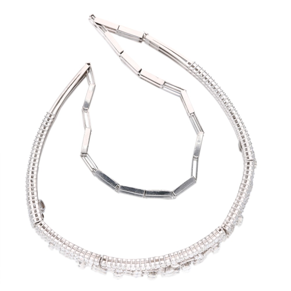 Composed of round brilliant, marquise-cut and baguette diamonds.